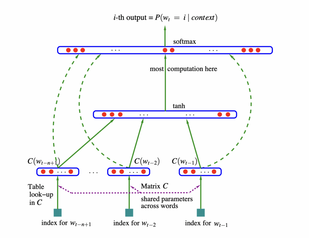 El modelado del lenguaje busca aprender la probabilidad de secuencias de palabras. Supera el problema de la rareza de estas (la “maldición de la dimensionalidad”) al aprender representaciones distribuidas (vectores) para cada palabra. Así, la similitud entre palabras permite generalizar y asignar alta probabilidad a frases nuevas compuestas por palabras similares a las ya vistas. Este modelo neuronal supera significativamente a los tradicionales n-gramas.
